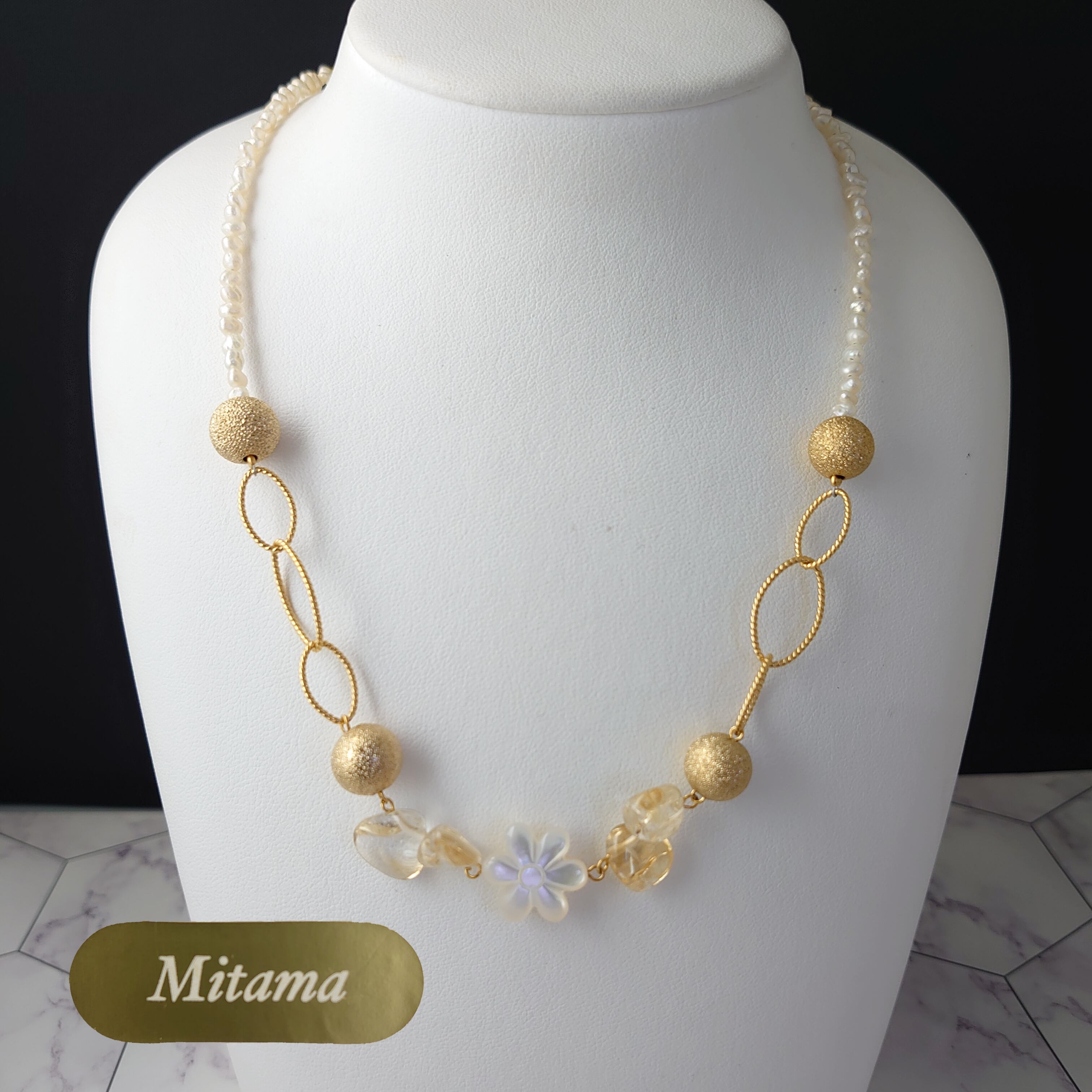 シェルのフラワーがセンターについた可愛いネックレスです。