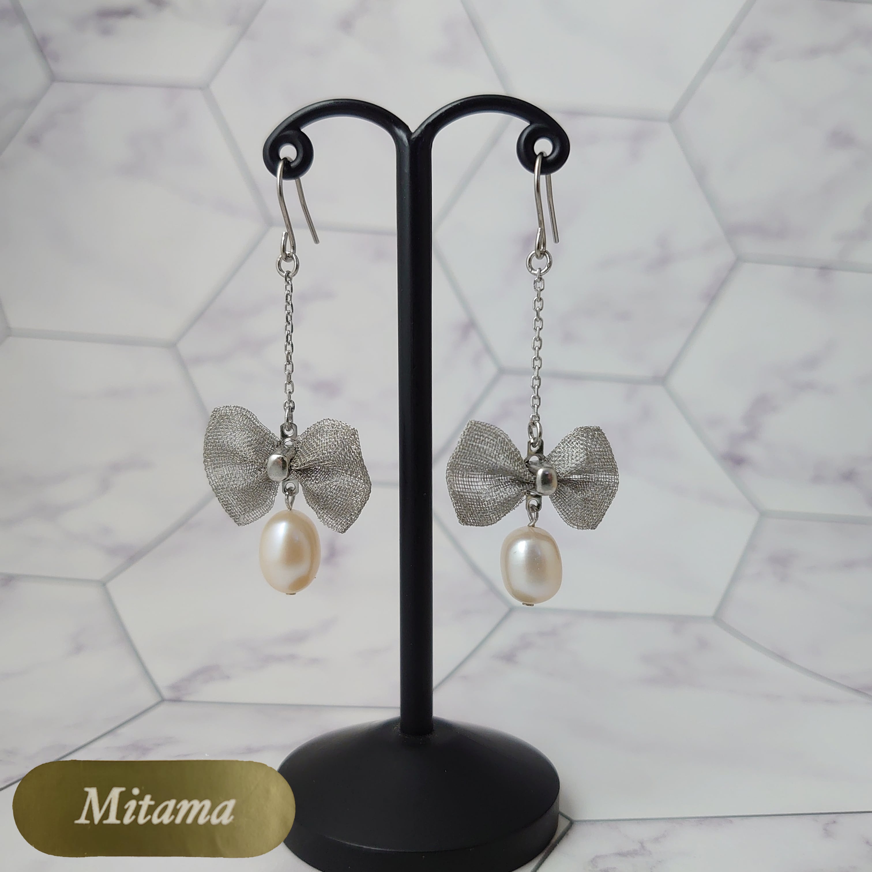 リボンがかわいいピアスです。