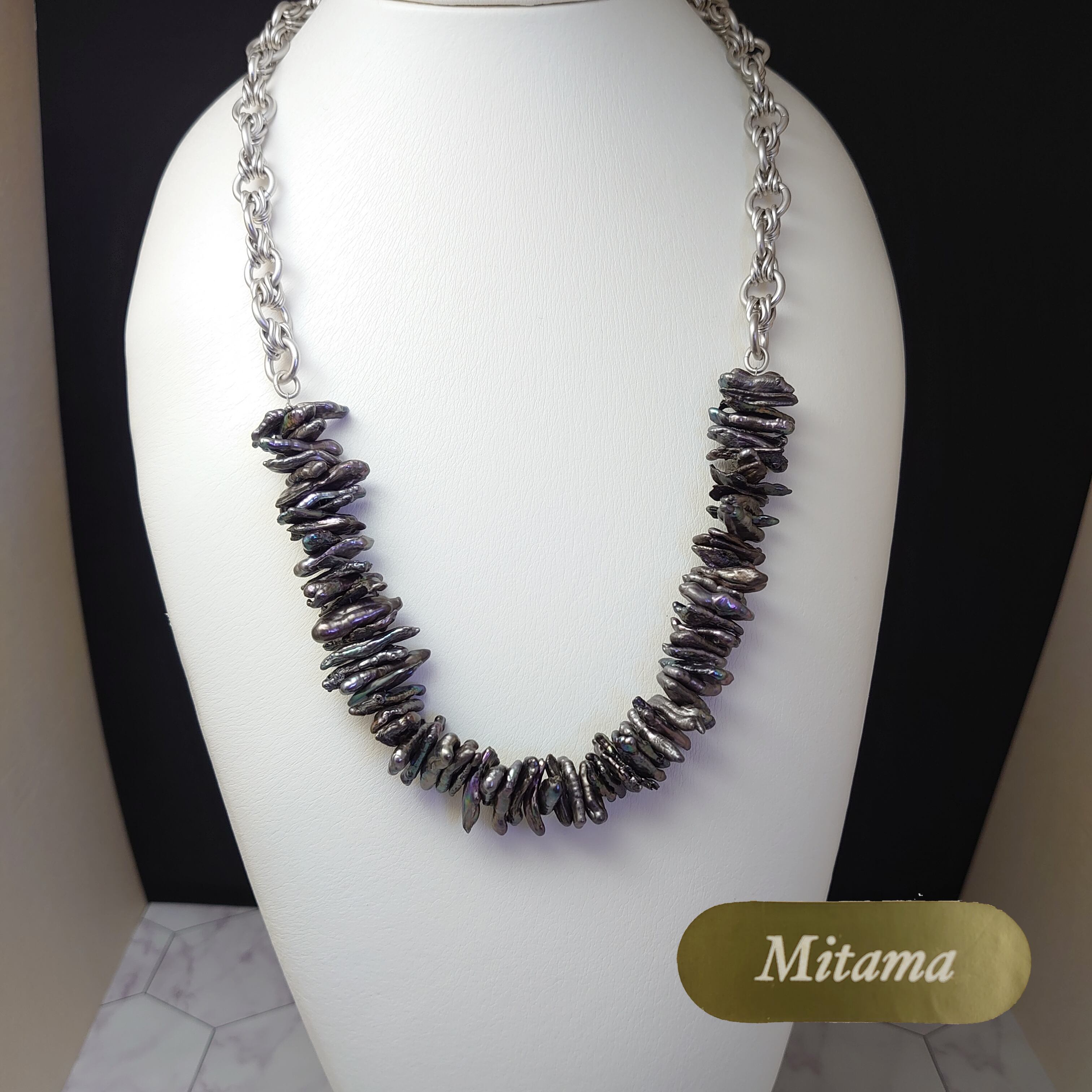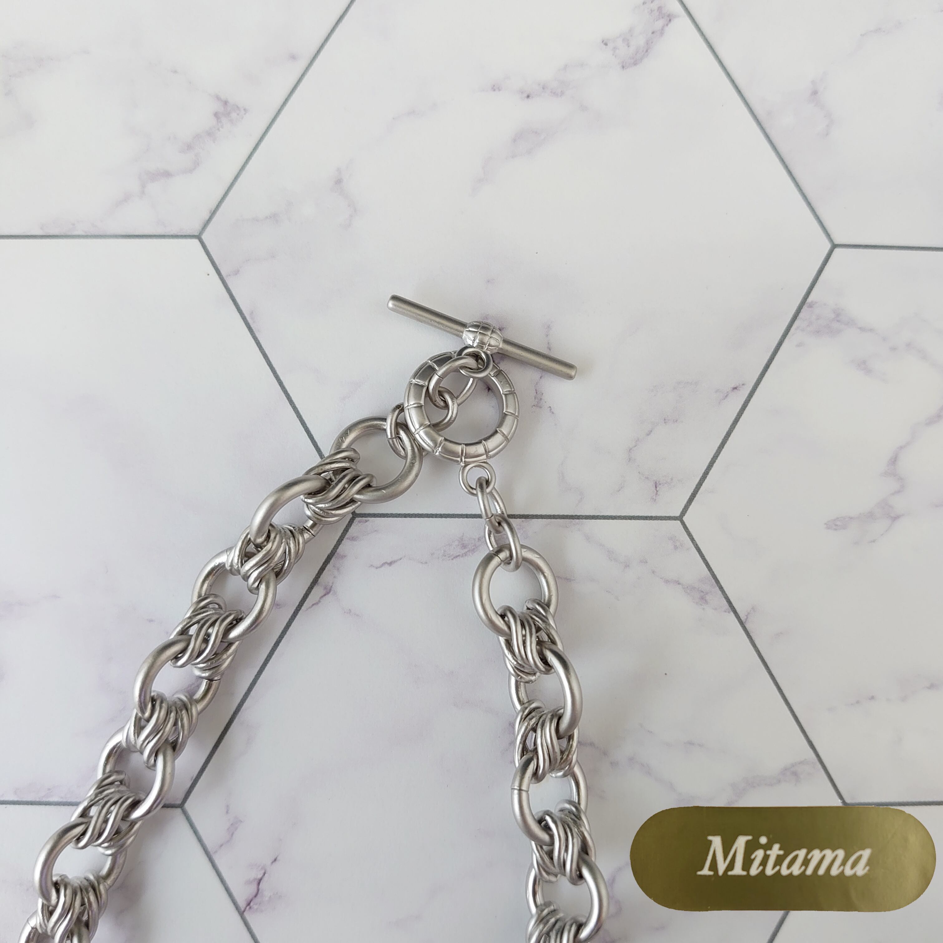 今流行りのデザインチェーンとパールを組み合わせたネックレスです。
