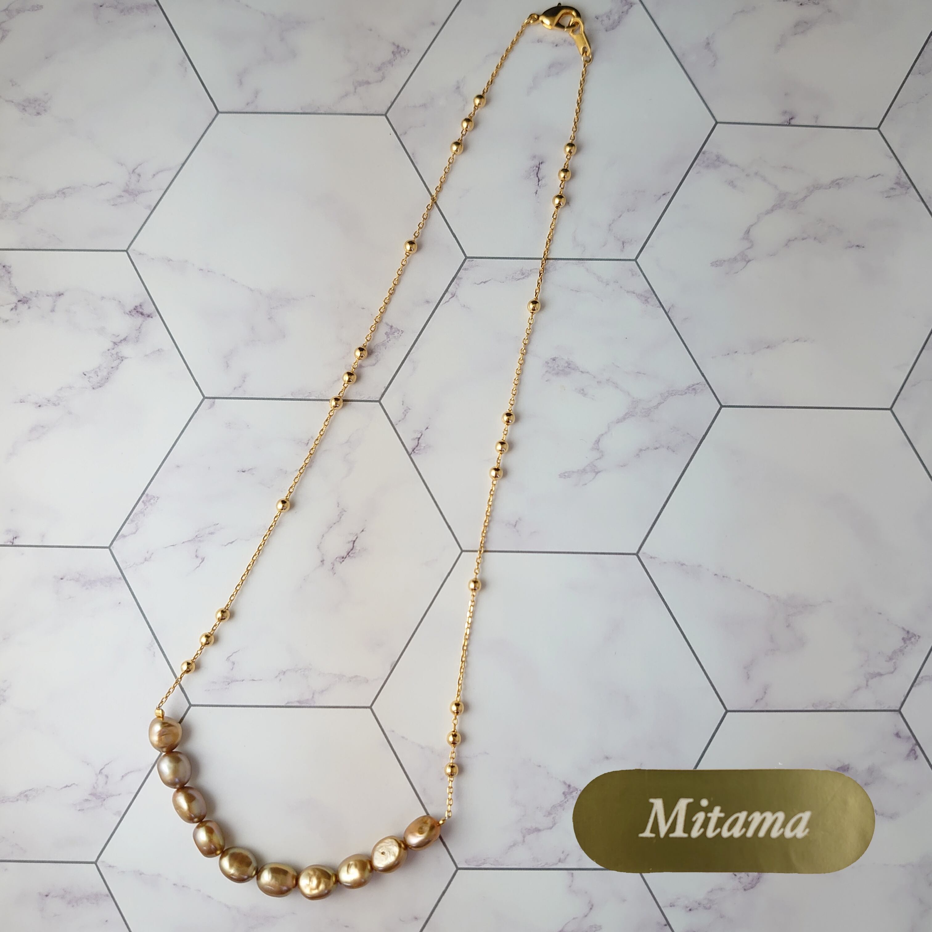 ゴールドカラーのフラット淡水真珠に